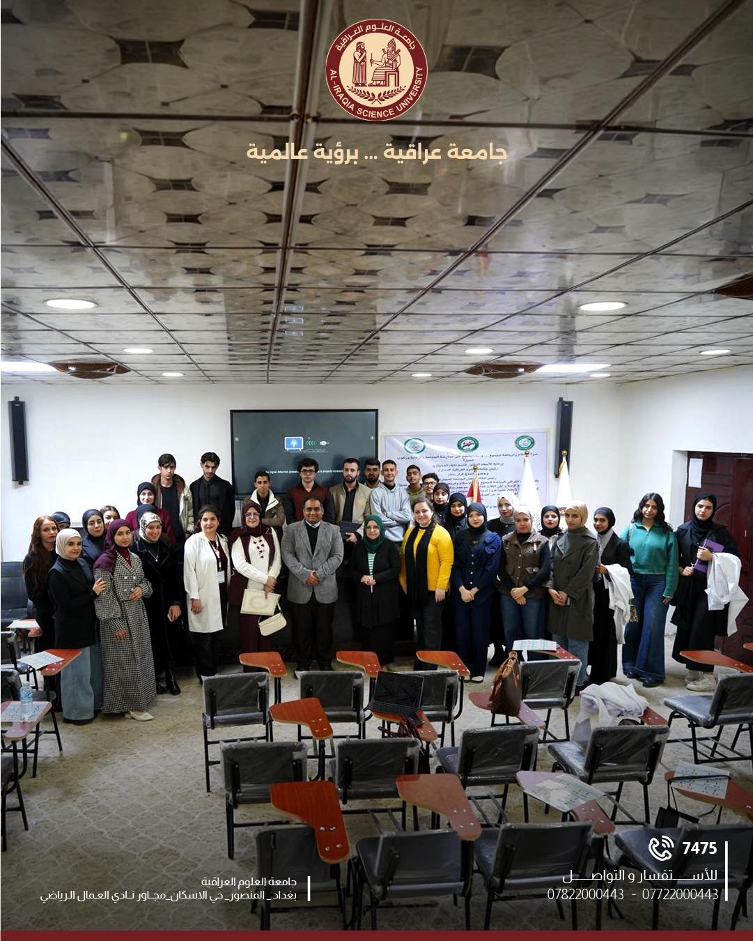 وتأتي هذه الورشة ضمن سلسلة النشاطات العلمية والتوعوية التي تحرص جامعة العلوم العراقية على تنظيمها، بما يسهم في خدمة الطلبة والمجتمع وتعزيز الشراكة مع المؤسسات الصحية الرسمية.